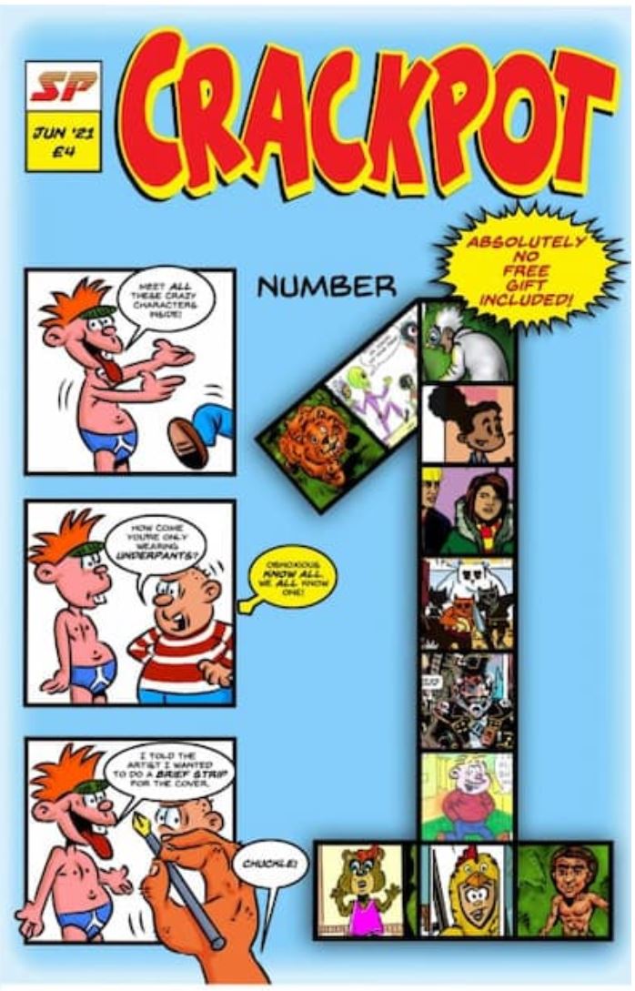 CRACKPOT is a 32 page, full colour comic for all ages but aimed primarily at kids who read stuff like The Beano and The Phoenix. It features ten strips and no adverts.